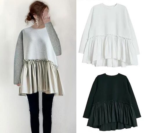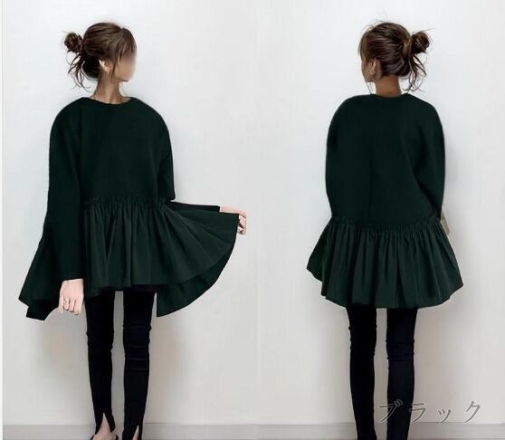 スウェット トレーナー フリル アシンメトリー 切り替え 体型カバー 着痩せ シンプル カジュアル パーカー カットソー 不規則