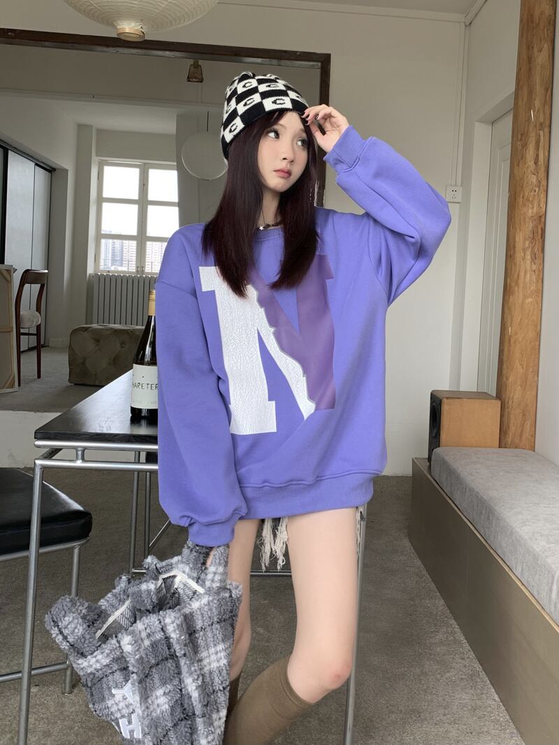 秋冬新作 裏起毛 長袖 アルファベット プルオーバー 切り替え 裏起毛 トレーナー★# HH3