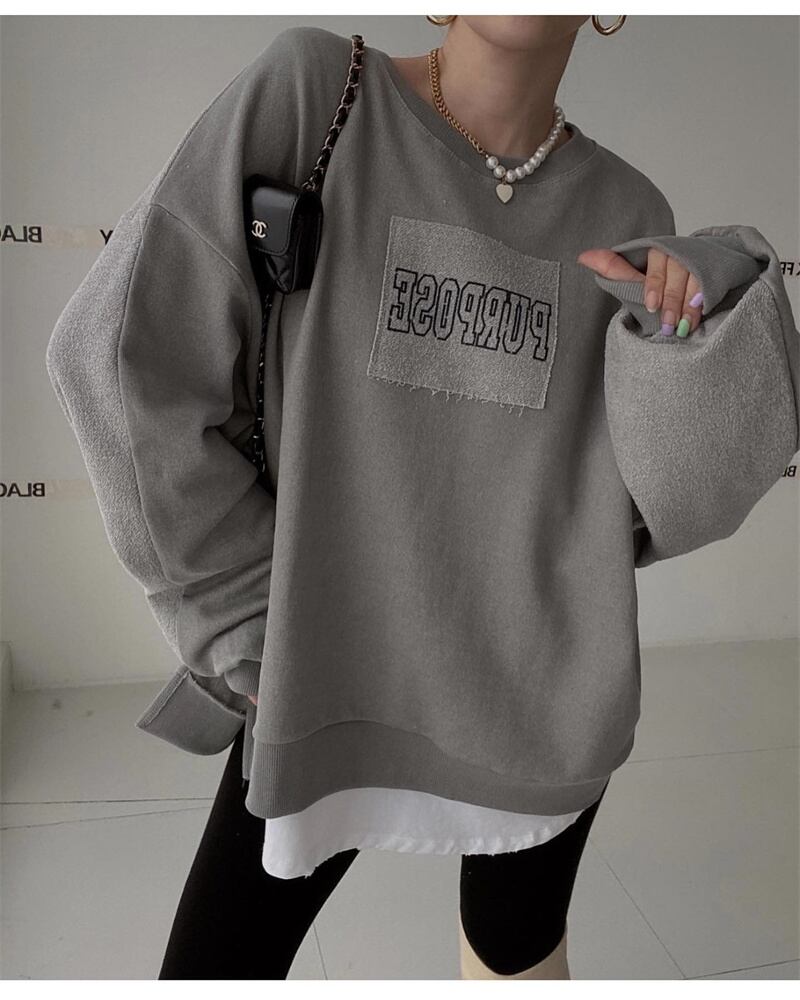 秋冬新作 レトロ ゆったり 長袖 プリント アルファベット プルオーバー トレーナー★# KKJ53988