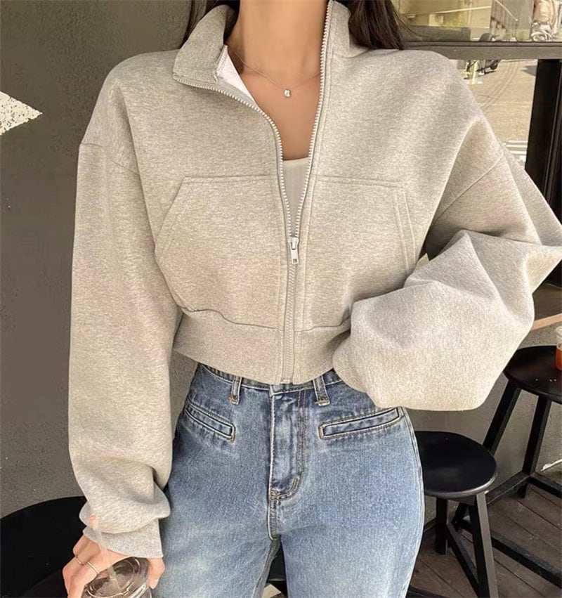 2023年秋冬INS 新作 韓国風 レイジー風 合わせやすい ミニ丈 長袖 トレーナー★# JKUU369