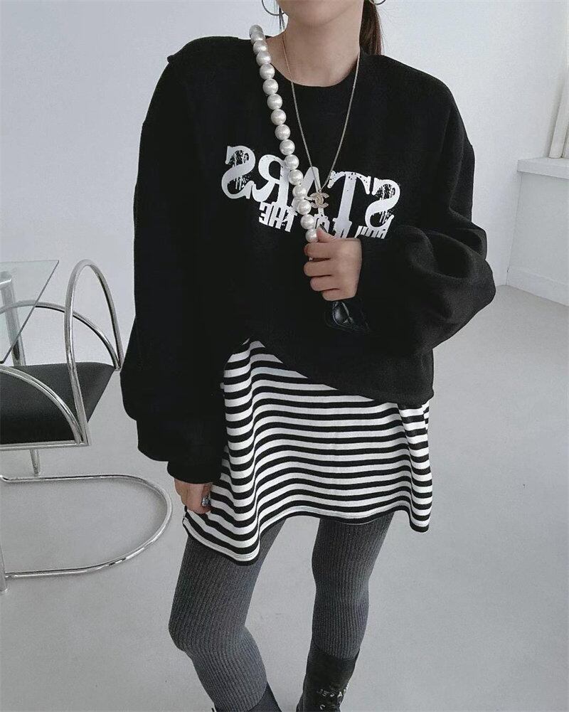 秋冬 新作 レトロ 設計感 裏起毛 長袖 配色 偽2枚 トレーナー★# GGFR23969