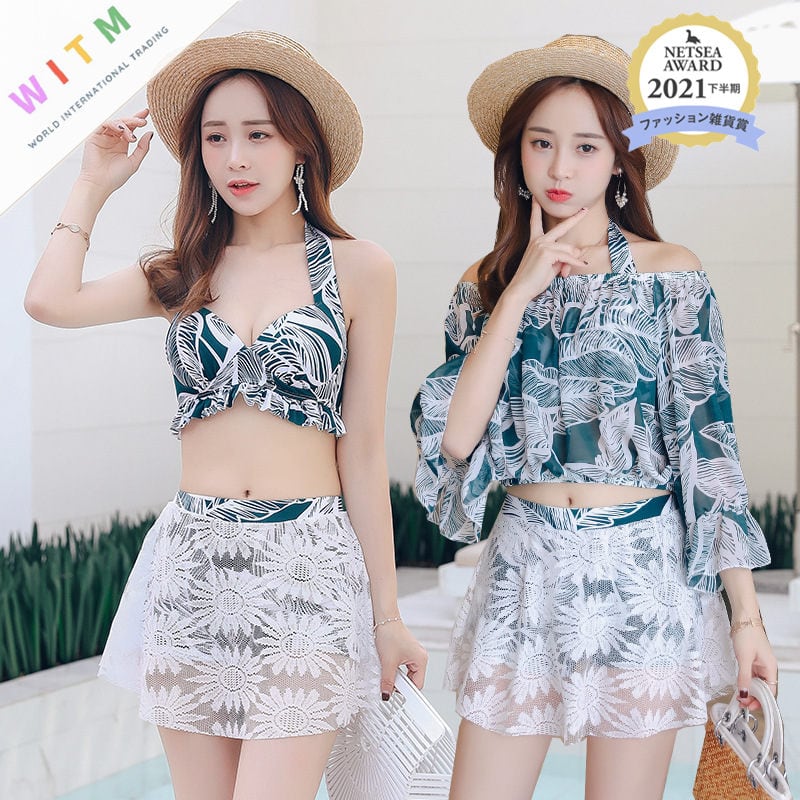 レディース 水着 3点上下セット ビキニ セパレート ワイヤー入り 温泉 ビーチ 夏★★ 水着 レディース おしゃれ ビーチ ビキニ リゾート プール 体型カバー スリム 可愛い インスタ映え セパレート 露出控えめ 盛れるハイウエスト 韓国 日焼け対策 競泳 スイムウェア日焼け防止 スタイルアップ 着痩せ