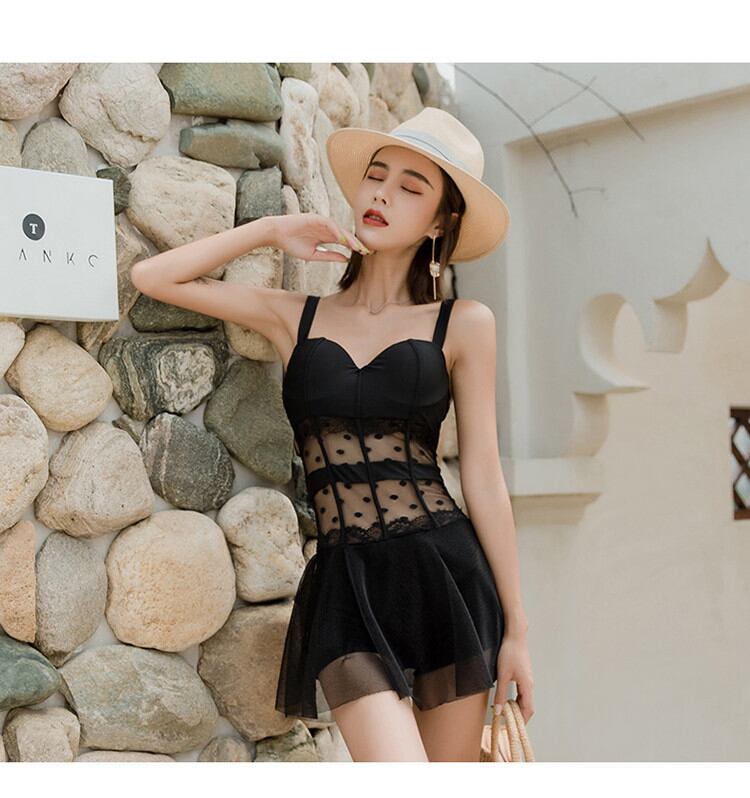水着 女性 黒 ワンピース水着 ボクサー 薄手 保守的 透かし彫り セクシー 韓国 温泉