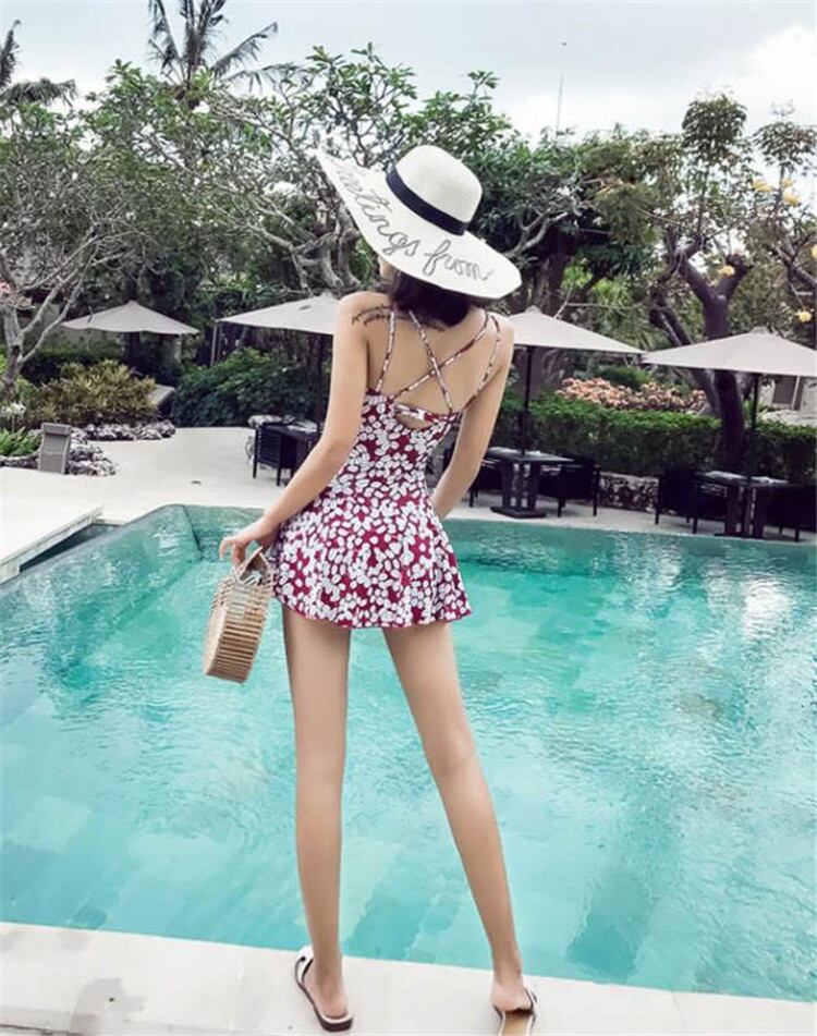 INSスタイル スリム ファッション 温泉 水泳 水着 女性 カバー腹 プリント ワンピース水着