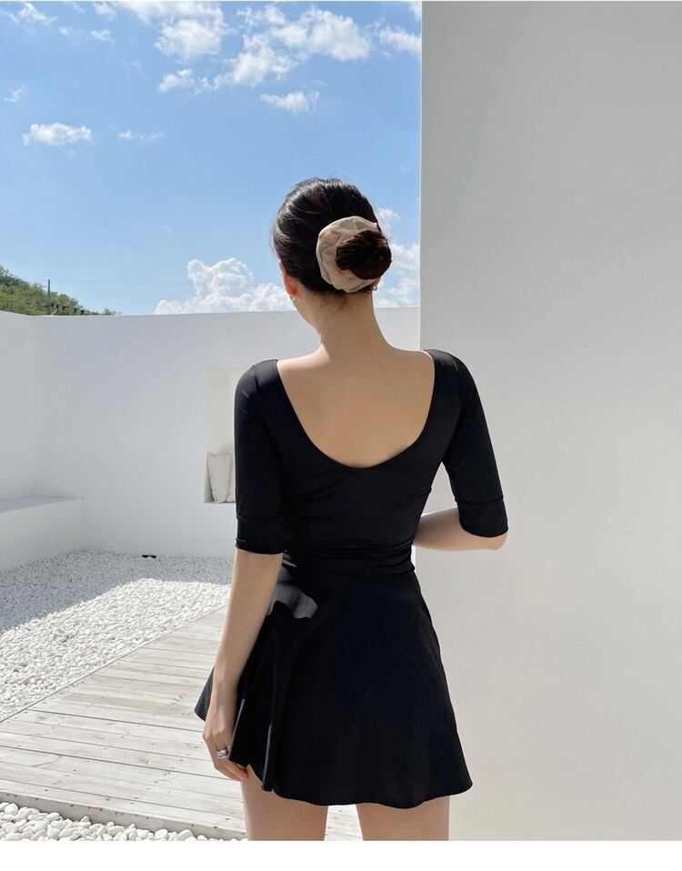お出かけ 小胸寄せ 水着 Vネック ミニスカート式 2023新品 シンプル 学生 半袖