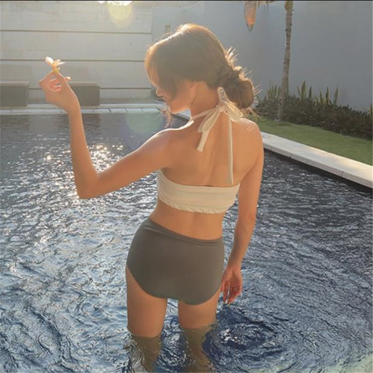 温泉 水着 保守的 韓国 INS 学生 sweet系 ギャザー 2点セット スプリット