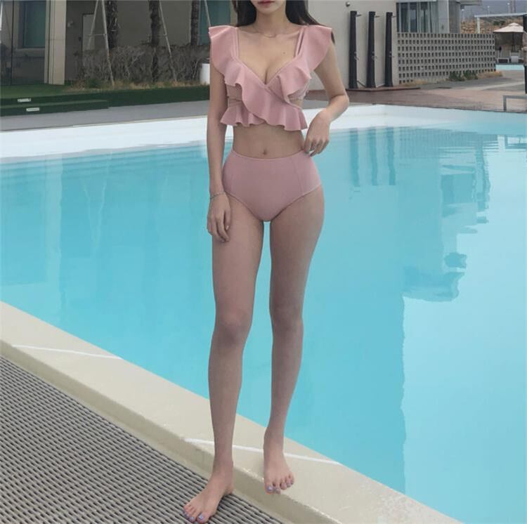 【注目の新作アイテム】韓国 コンビネゾン フリル Vネック ピンク 鋼托がある トライアングル 水着★★ 水着 レディース おしゃれ ビーチ ビキニ リゾート プール 体型カバー スリム 可愛い インスタ映え セパレート 露出控えめ 盛れるハイウエスト 韓国 日焼け対策 競泳 スイムウェア日焼け防止 スタイルアップ 着痩せ