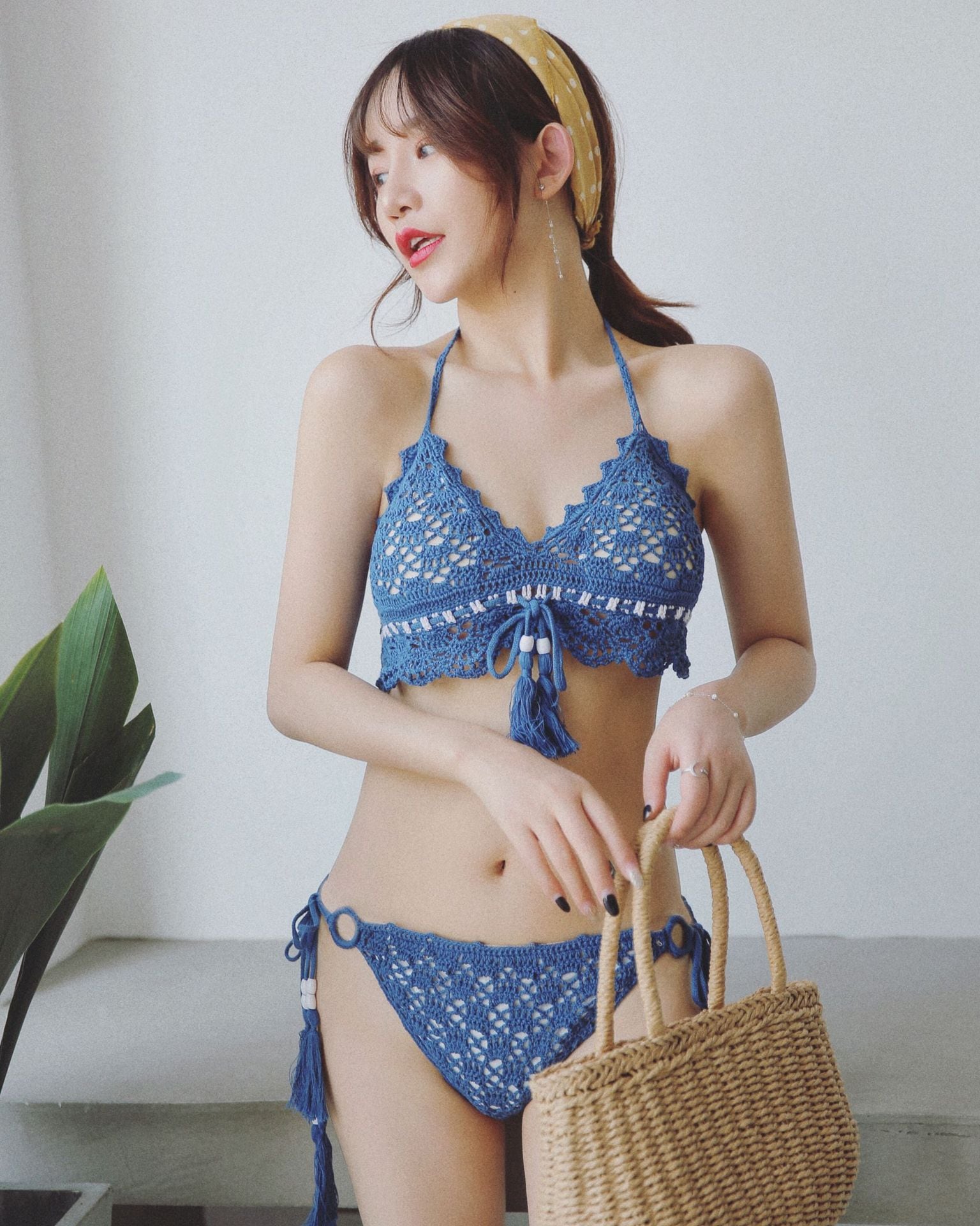 女性らしいニット素材のビキニを紹介します。アンダーバストと肩紐は後部ラインにまとめて結ぶスタイルだから自分サイズに調節可能!!パンツはサイドのストラップでセクシーさを強調。4カラーを準備しましたので、お好きなカラーをお選びください。■素材:ポリエステル