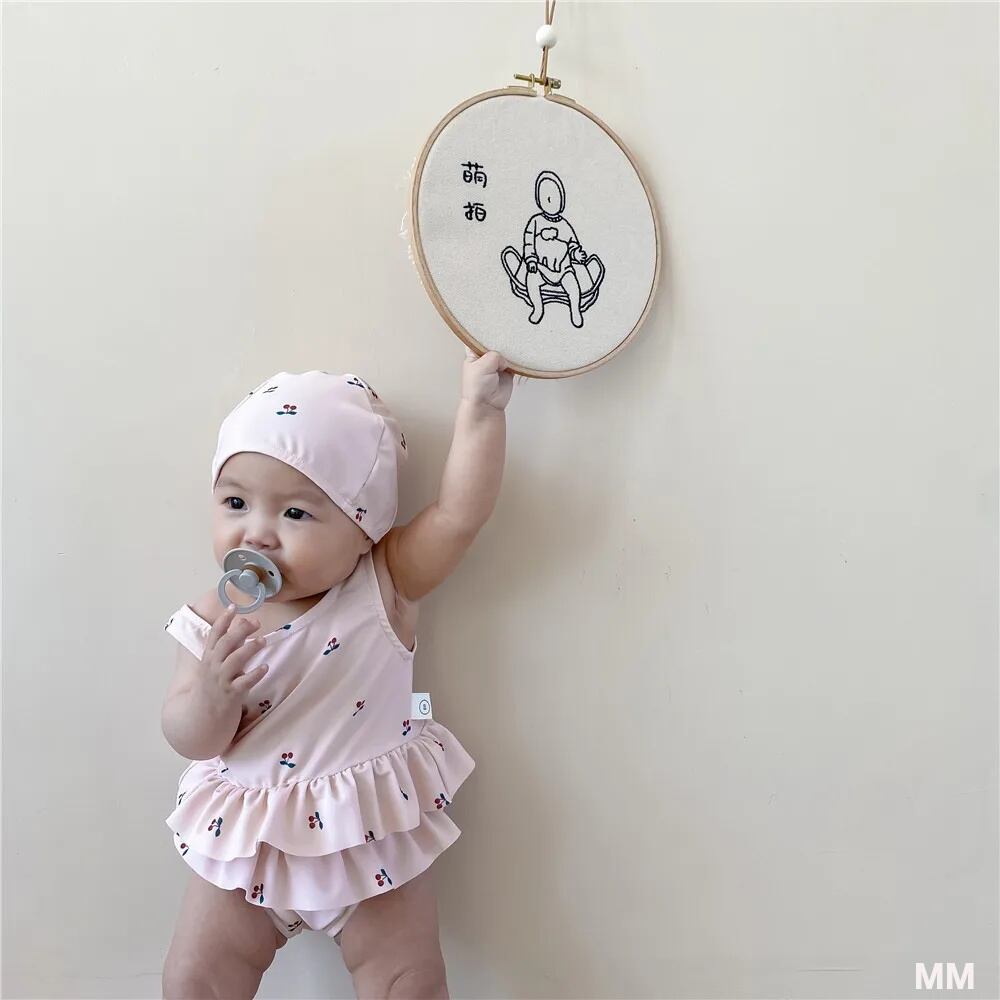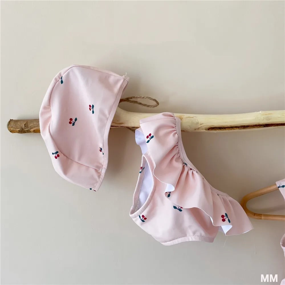 小さな女の子のための夏の水着,ビーチと休暇のための韓国のチェリープリントの服,子供のための背中の開いた水着|水着| 韓国系水着 セパレート水着 ワンピース水着 T240626111111_01