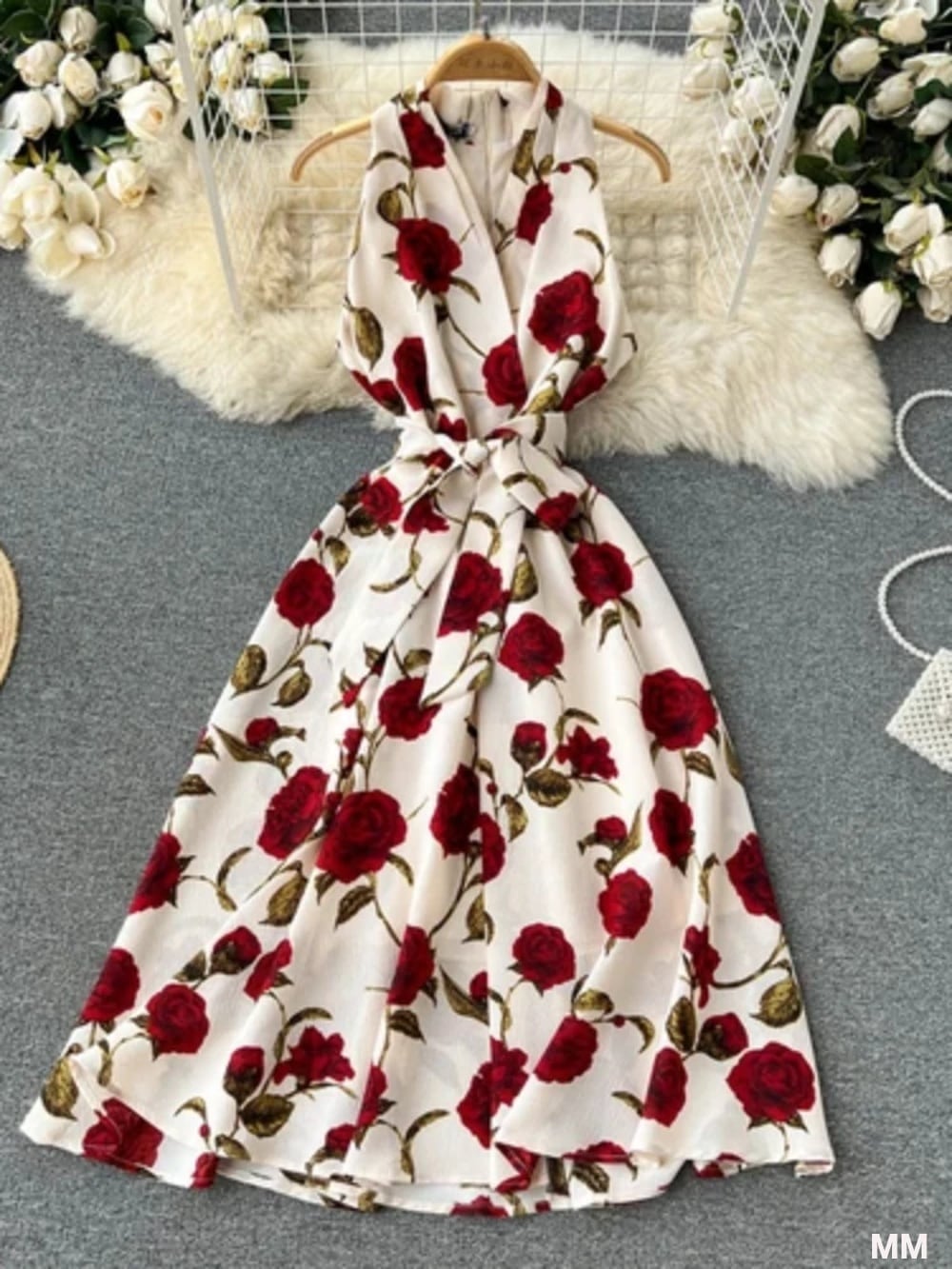 女性の花柄のロングドレス,ノースリーブ,ハイウエスト,フレアライン,韓国,カジュアル,エレガント,パーティー,夏 韓国系水着 セパレート水着 ワンピース水着 T240626111119_01
