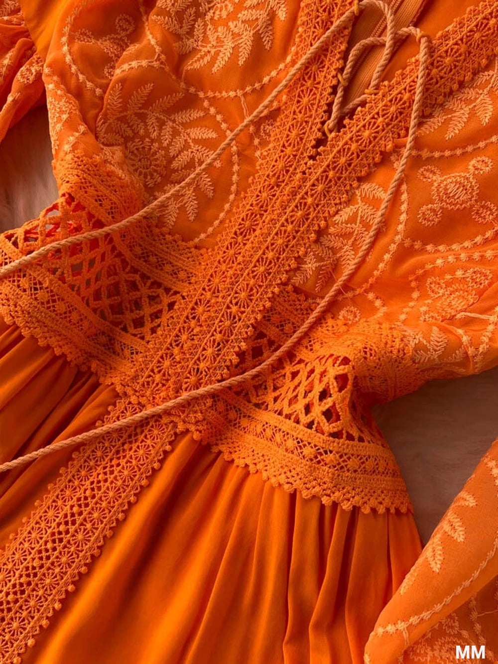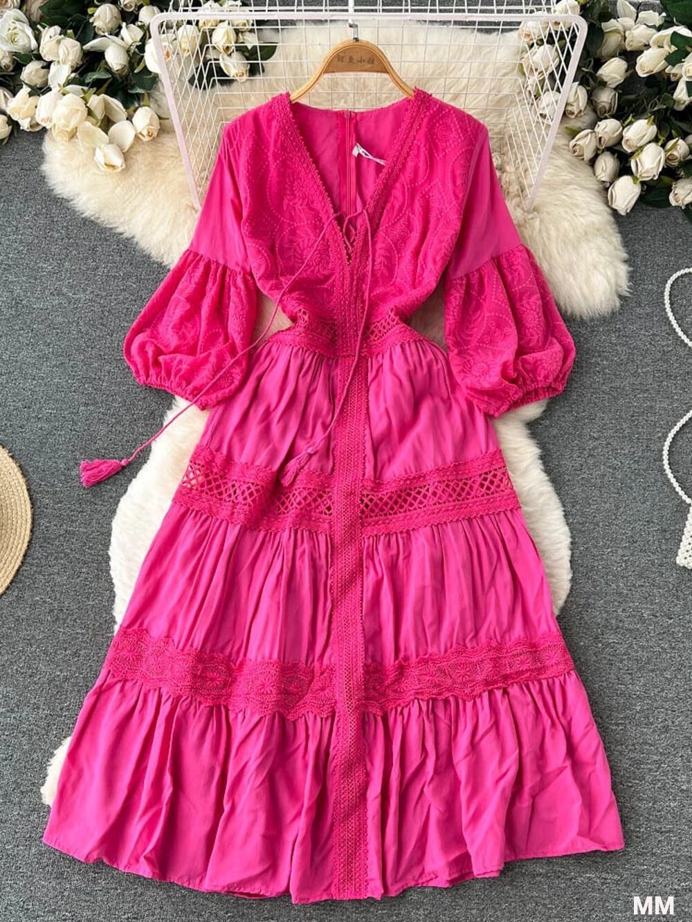女性のための長袖ランタンドレス,エレガント,フランスの透かし彫り,ミッドレングス,ヴィンテージ,夏,新しいコレクション 韓国系水着 セパレート水着 ワンピース水着 T240626111144_02