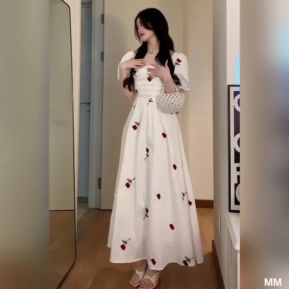 女性のための白い花柄のロングドレス,フィットウエスト,ファッショナブル,韓国スタイル,プラスサイズ,夏,2024 韓国系水着 セパレート水着 ワンピース水着 T240626111252_03