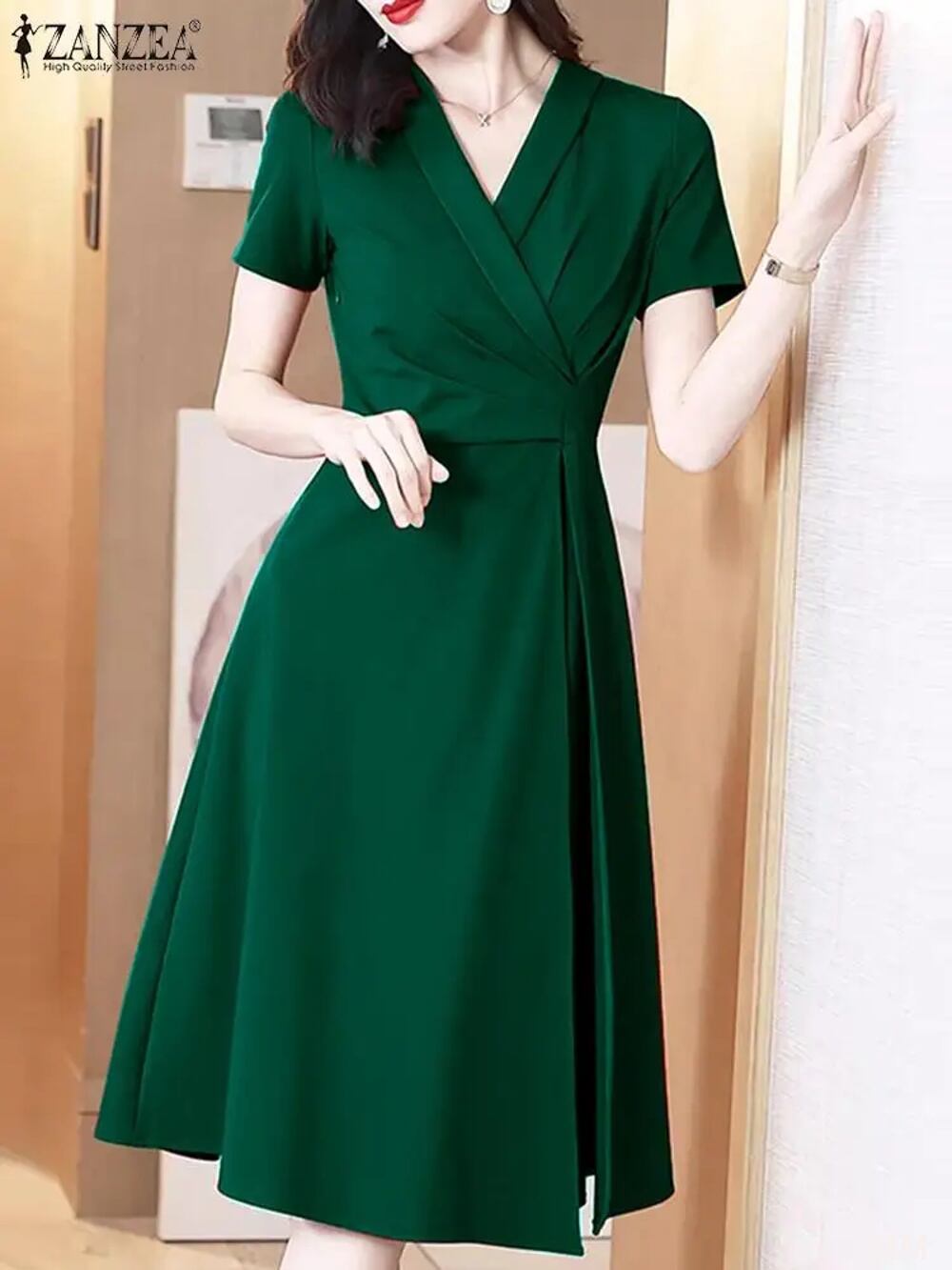 Zanzea 女性のためのエレガントなプリーツドレス,韓国の半袖ドレス,ウエストの収集,ヴィンテージ,パーティー,オフィス,プロのドレス,夏,2022 韓国系水着 セパレート水着 ワンピース水着 T240626111321_01
