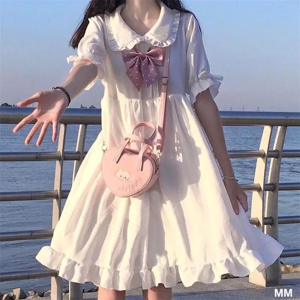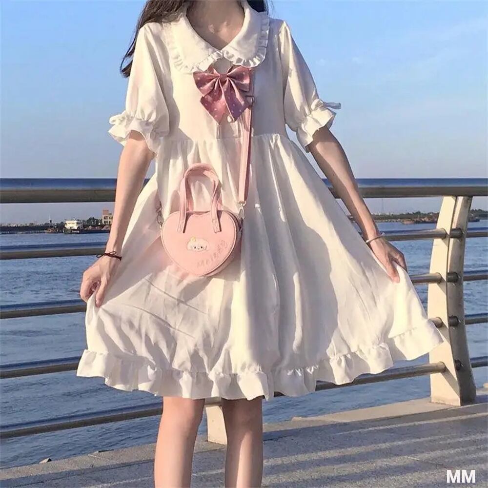 「Houzhou kwaiii lolita」ドレス,女性用,和風,かわいい,半袖,プレッピー,ソフト,韓国ファッション,夏 韓国系水着 セパレート水着 ワンピース水着 T240626111325_01