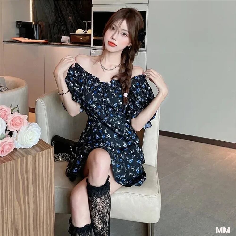 Kpop 女性のためのミニドレス,新しいコレクション2022,壊れた花のパターン,パフスリーブ,正方形のカラー,韓国スタイル,夏 韓国系水着 セパレート水着 ワンピース水着 T240626111409_02
