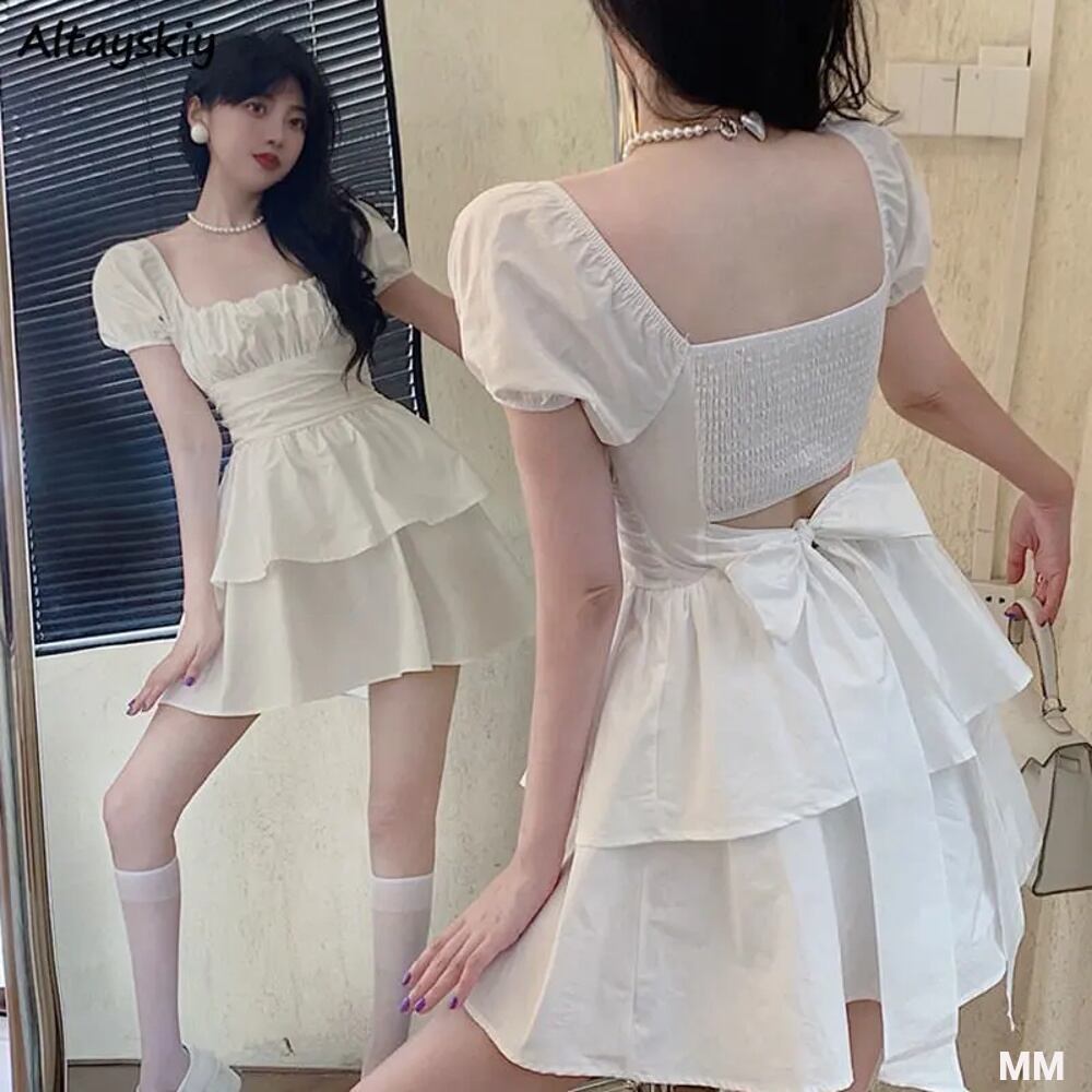 女性のためのフラウンス付きの柔らかいドレス,半袖のカジュアルな韓国スタイルのプリンセスドレス,夏の大学 韓国系水着 セパレート水着 ワンピース水着 T240626111522_02