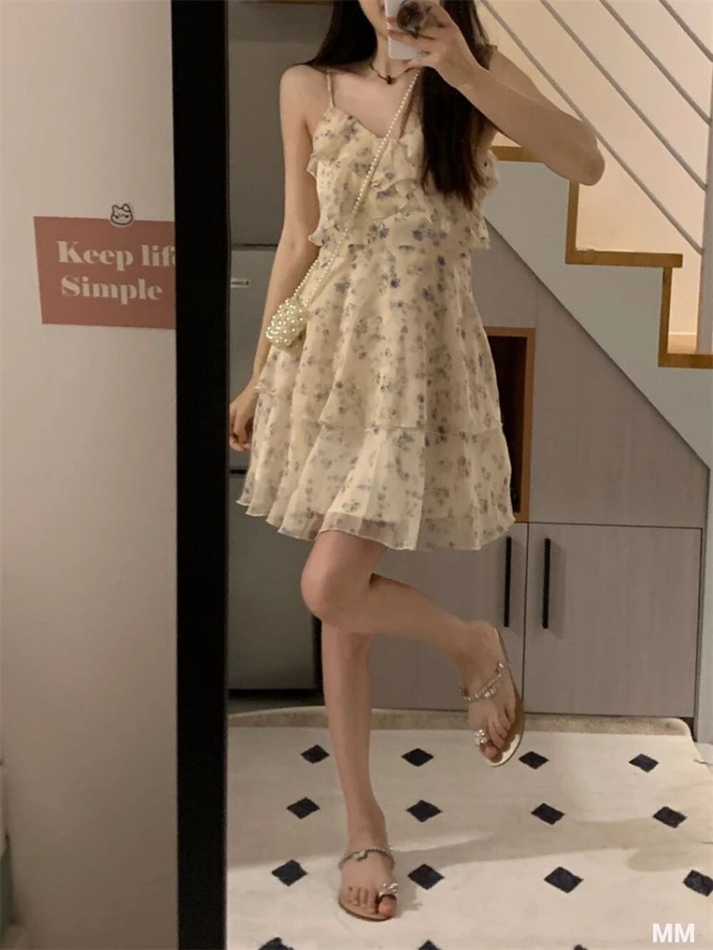 女性のための花柄のドレス,スパゲッティストラップ,妖精のコア,フリル,夏,プリンセス,人気の気質,韓国スタイル 韓国系水着 セパレート水着 ワンピース水着 T240626111614_01