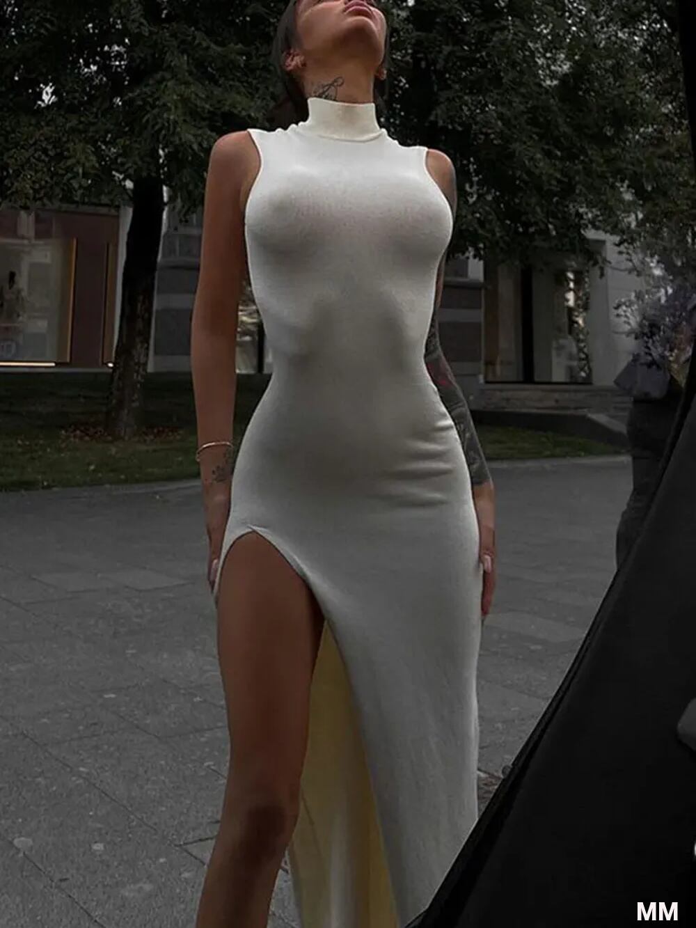 女性のためのセクシーなタイトなドレス,白いスリット,クラシックな豪華なロングドレス,韓国スタイル,タートルネック,誕生日の衣装 韓国系水着 セパレート水着 ワンピース水着 T240626111616_01