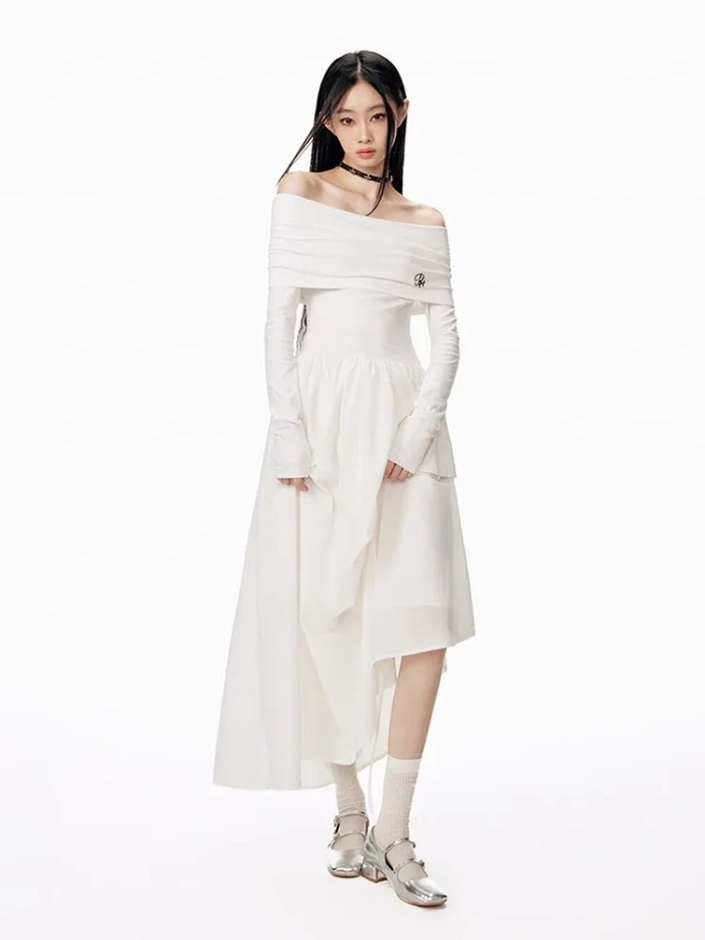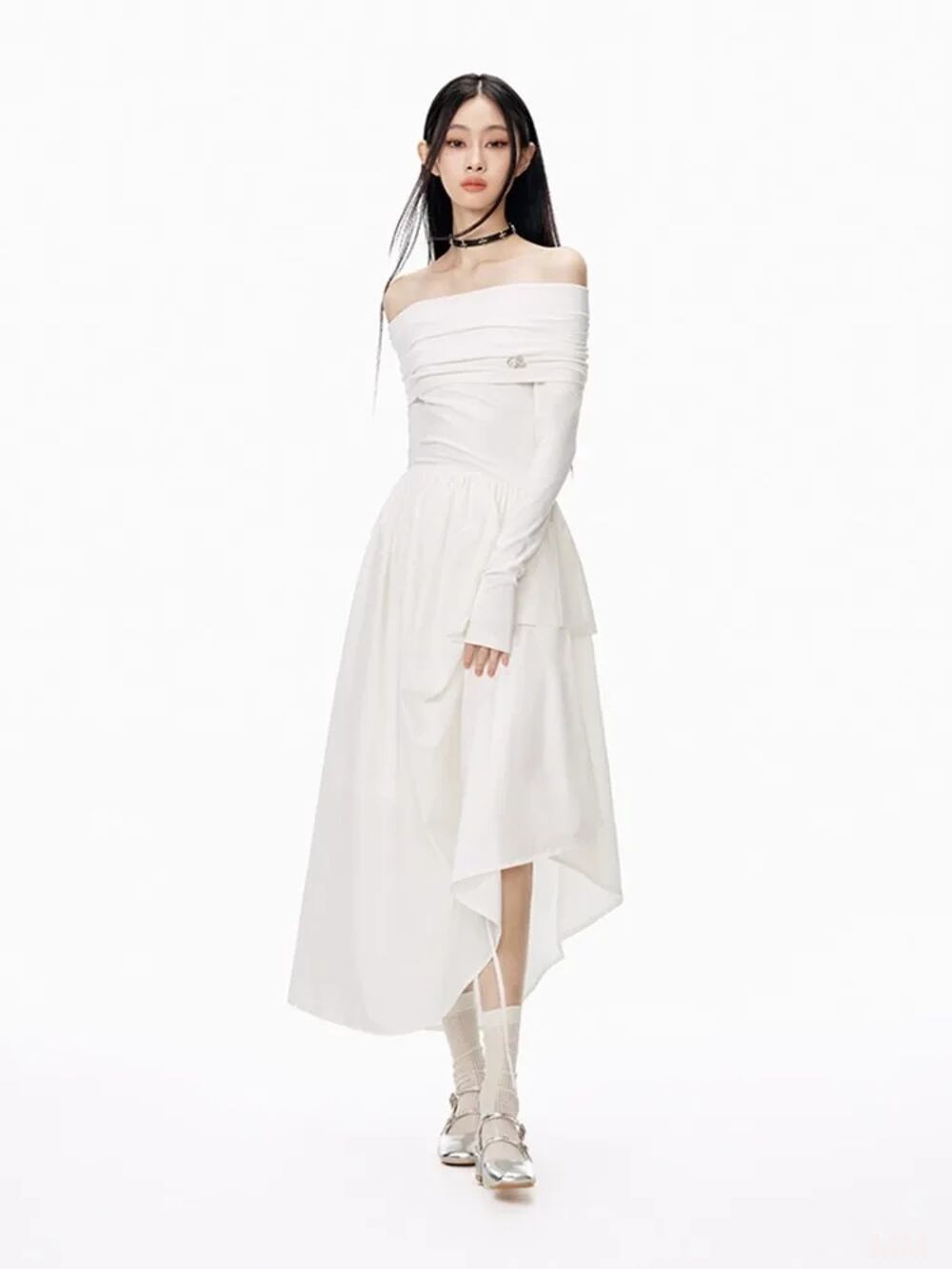 Houzhou 女性用ワンピースボディ,長袖ドレス,エレガント,韓国スタイル,白,黒,ゴシック 韓国系水着 セパレート水着 ワンピース水着 T240626111619_02