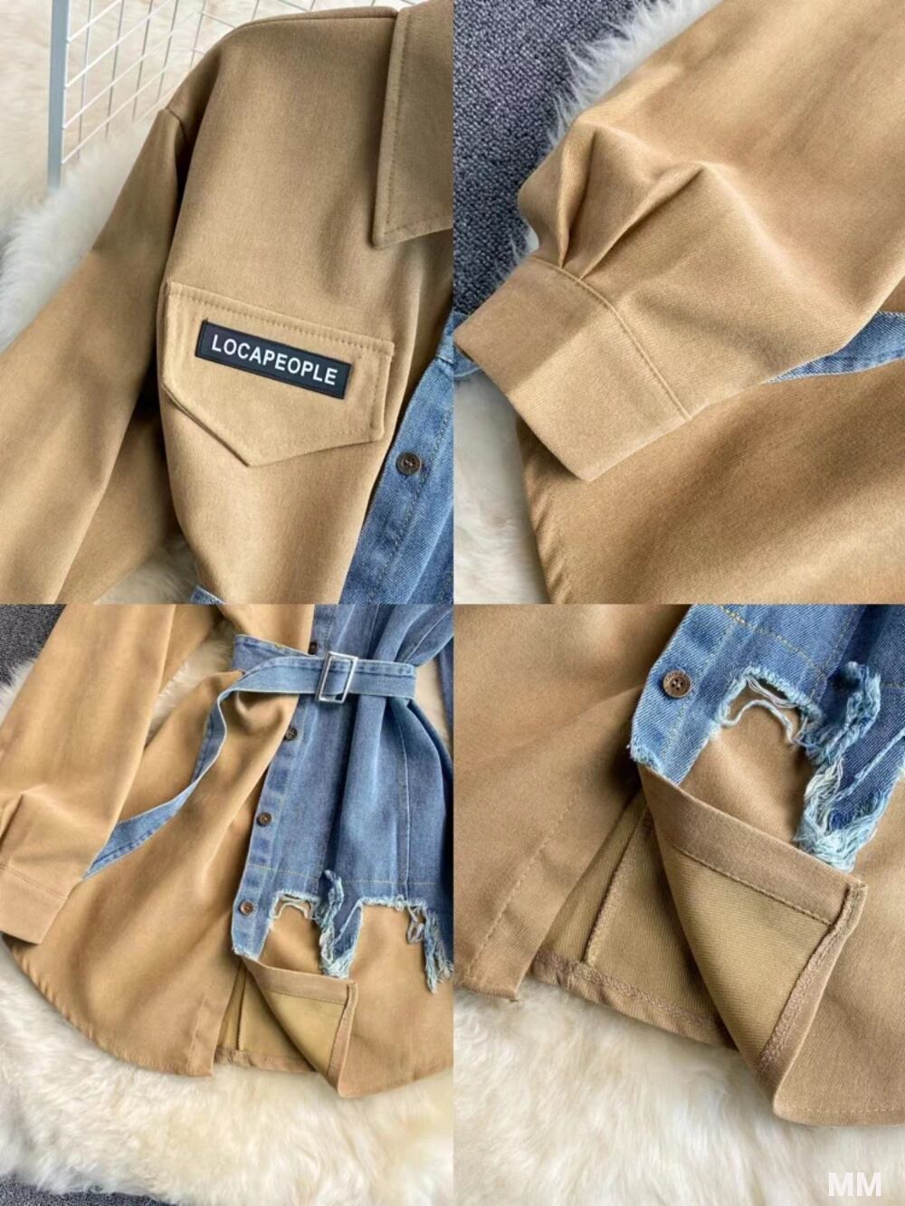 女性のデニムパッチワークブラウスドレス,コーデュロイドレス,不規則なシャツ,ロング,韓国のファッション,新しい春 韓国系水着 セパレート水着 ワンピース水着 T240626111622_03