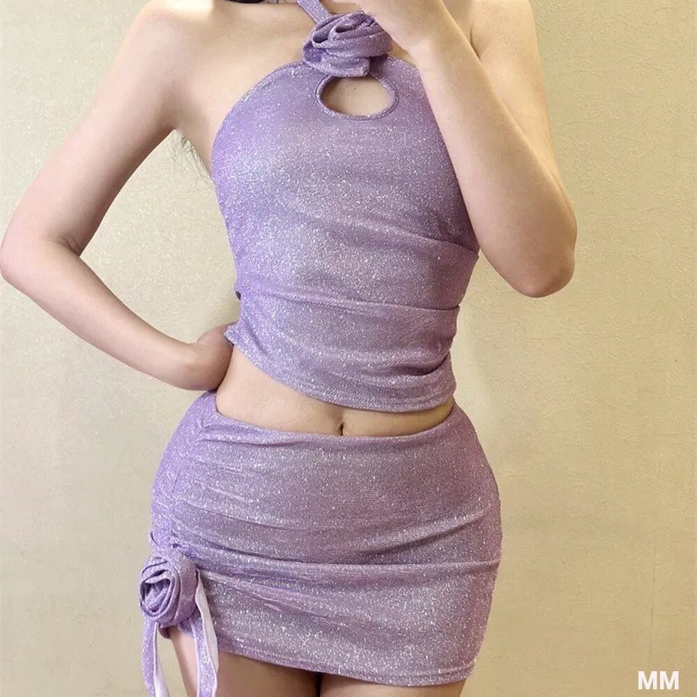 女性のためのセクシーな光沢のある3Dフラワー水着,韓国のビーチウェア,女性のための紫色のビキニセット,3パックの水着,スカート,2022 韓国系水着 セパレート水着 ワンピース水着 T240626111648_01