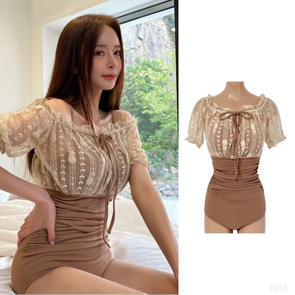 韓国スタイルの水着,袖と裸の肩,ワンピース,スパスイマー,三角形,薄い,ビーチリゾート,2023 韓国系水着 セパレート水着 ワンピース水着 T240626105411_01