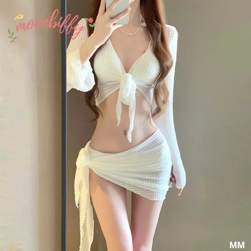 女性用韓国スタイルのセータービキニセット,ハイウエスト水着,ホルターネック水着,カーディガンカバーアップ,ホワイト,韓国スタイル 韓国系水着 セパレート水着 ワンピース水着 T240626105534_02