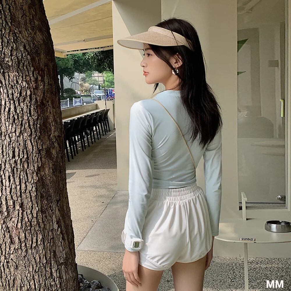 Wosuni 女性用ツーピース水着,韓国スタイル,長袖,フラット,ハイカラー,スポーツスタイル,2023 韓国系水着 セパレート水着 ワンピース水着 T240626105631_01