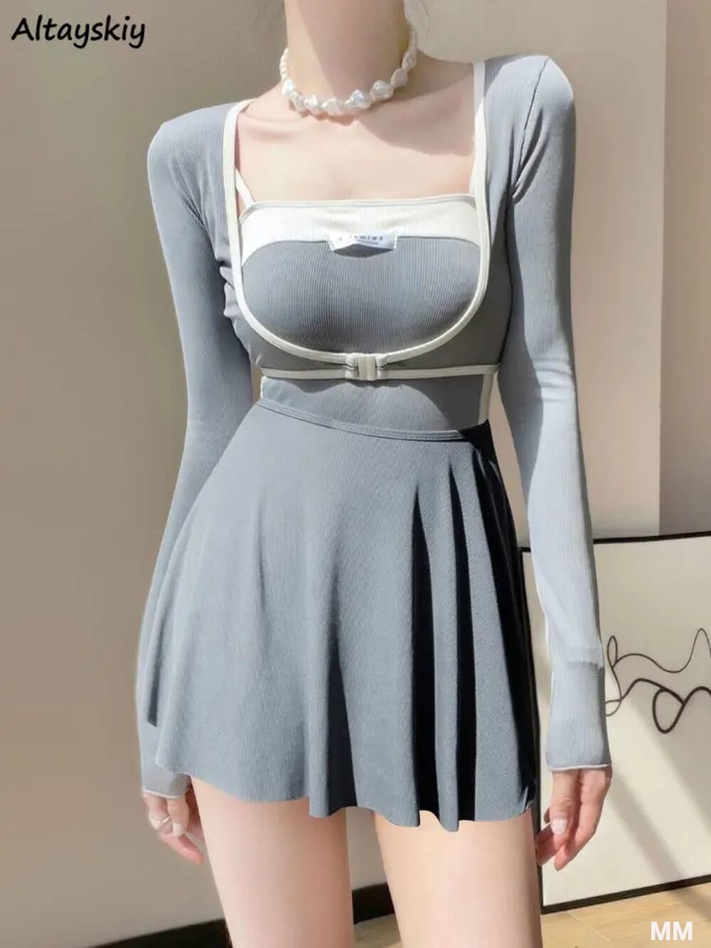 女性用3ピース韓国スタイルビキニセット,シンプルな長袖サマー水着,セクシーカジュアルスポーツ水着 韓国系水着 セパレート水着 ワンピース水着 T240626105838_06