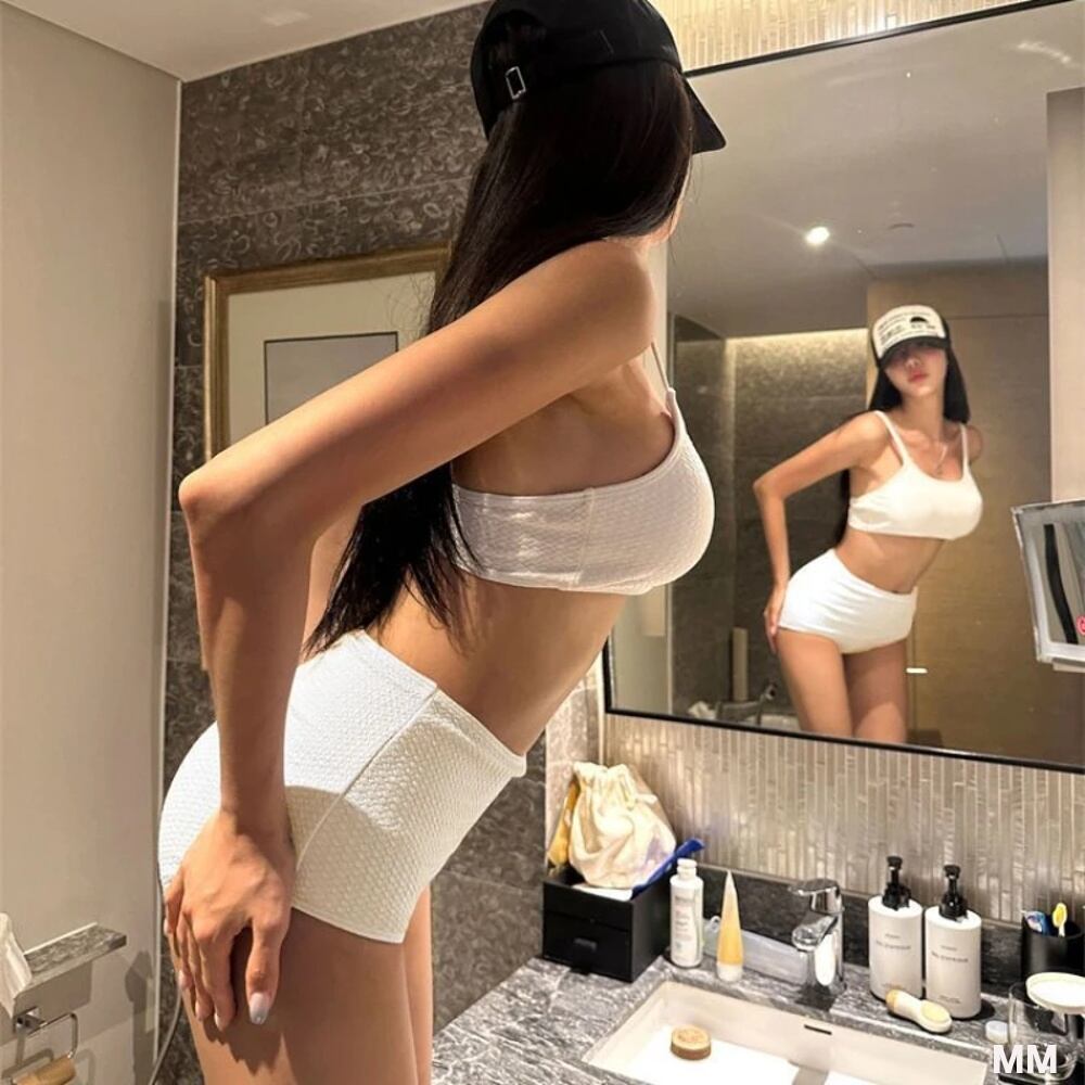 女性用ツーピーストライアングルビキニセット,ハイウエスト水着,韓国水着,スポーツスーツ,単色,ファッショナブル,2022 韓国系水着 セパレート水着 ワンピース水着 T240626105954_02