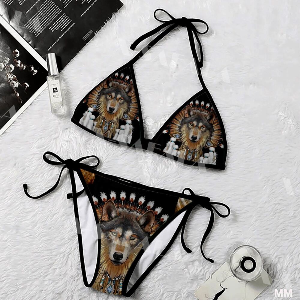 女性のためのセクシーな3Dプリント水着,オオカミのパターンのツーピースセット,ビーチウェア,夏 韓国系水着 セパレート水着 ワンピース水着 T240626110222_02