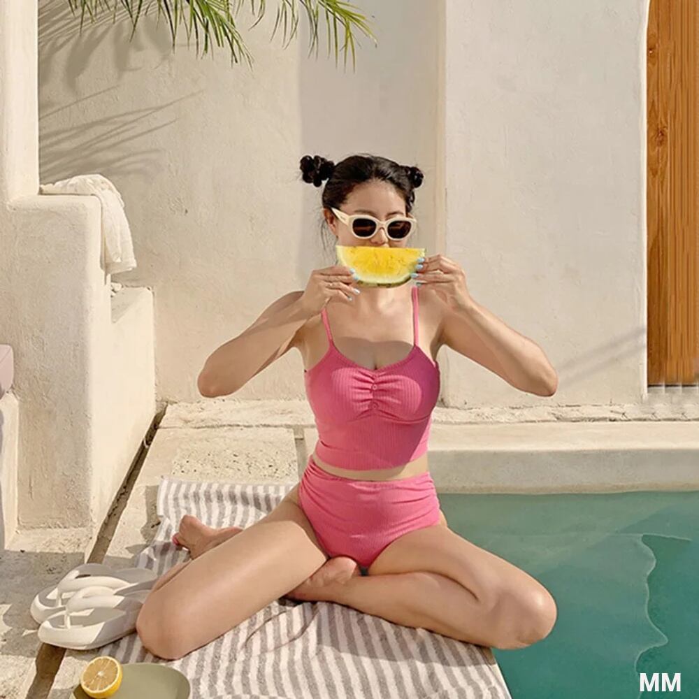 女性用ツーピース水着,ピンク,ハイウエスト,キュート,韓国スタイル,ビーチウェア,ビキニセット,新デザイン,2024 韓国系水着 セパレート水着 ワンピース水着 T240626110307_01