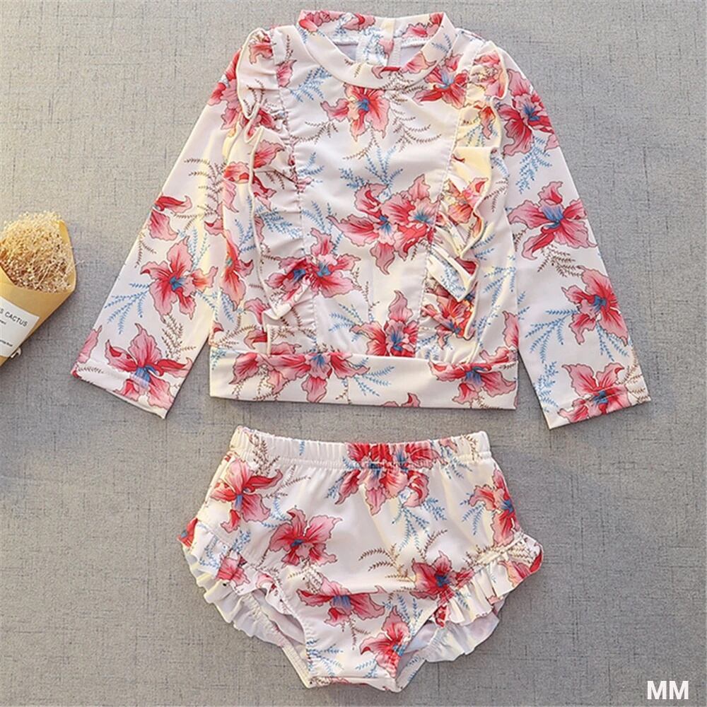 女の子のためのヴィンテージフローラルビキニ,韓国スタイルの水着,日焼け止め付き長袖フリルフラワー水着,ハイウエスト水着 韓国系水着 セパレート水着 ワンピース水着 T240626110440_16