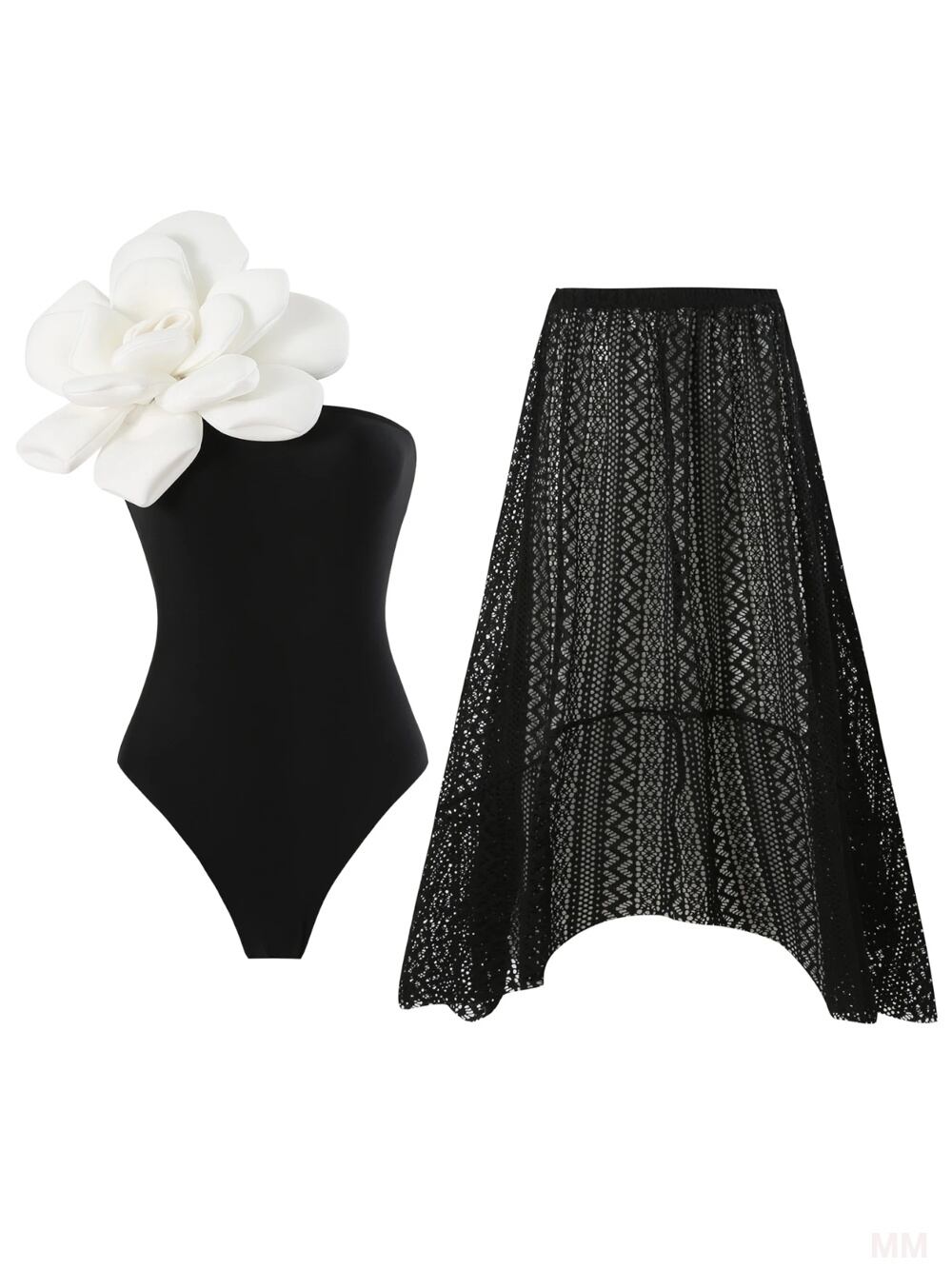 Bikinx 女性用ワンピース水着、おなかコントロール、黒、ワンショルダー、ドレスチーム、花、ビーチ用 韓国系水着 セパレート水着 ワンピース水着 T240626110524_01