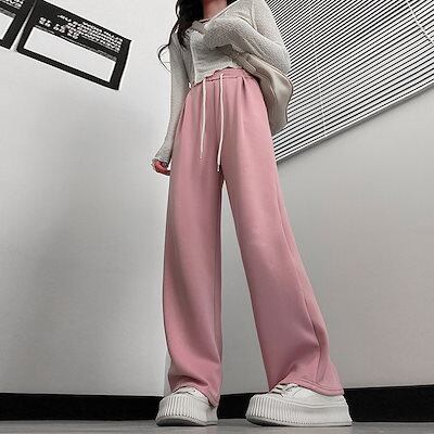 【エアパンツ】ピンクスウェットパンツレディース新作ドレープカジュアルパンツレディーススリムワイドレッグパンツ