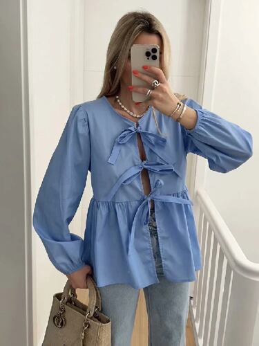 女性のためのヴィンテージパフスリーブ,ボタン付きのルーズフィットTシャツ,フリルトップ,女性のためのシックな服,愛らしいファッション,2024コレクション