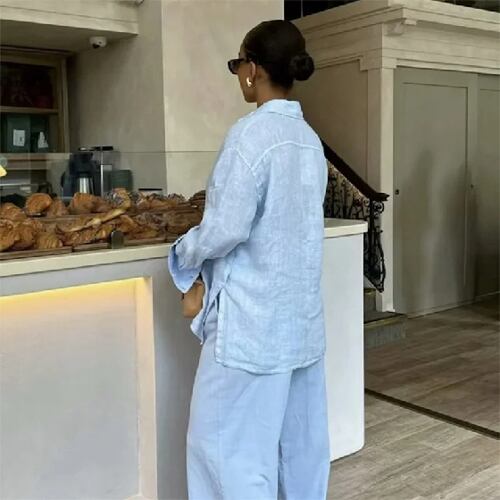 女性のためのraf-特大のリネンシャツ、長袖ブラウス、ゆったりとしたカジュアル、青、夏のファッション、2024