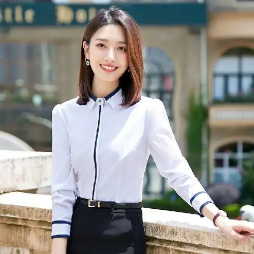 女性用長袖ブラウス,ボタン付きシャツ,フォーマル,白,スリム,仕事用,エレガントなトップス,韓国のファッション