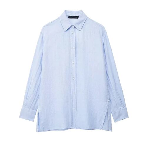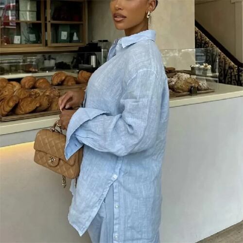 女性のためのraf-特大のリネンシャツ、長袖ブラウス、ゆったりとしたカジュアル、青、夏のファッション、2024