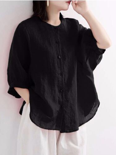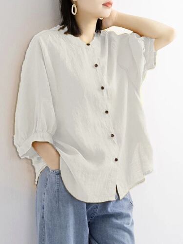 Zoki-女性用コットンとリネンのシャツ,ルーズフィット,ランタンスリーブ,韓国のサマートップ,ボタン付き,直送