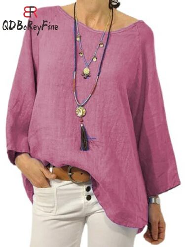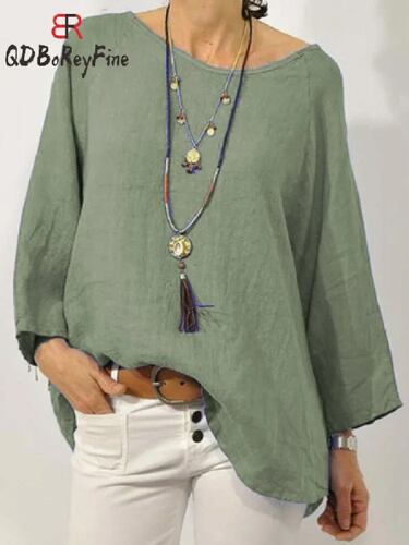 女性用長袖コットンとリネンのシャツ,カジュアルなベーシックチュニック,柔らかくて特大のブラウス,夏