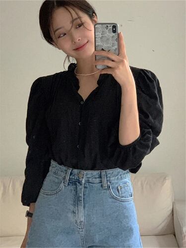 女性用パフスリーブのオフィスブラウス,ヴィンテージの特大ブラウス,エレガントな女性,韓国のファッション,甘い,春,夏,2021,新品