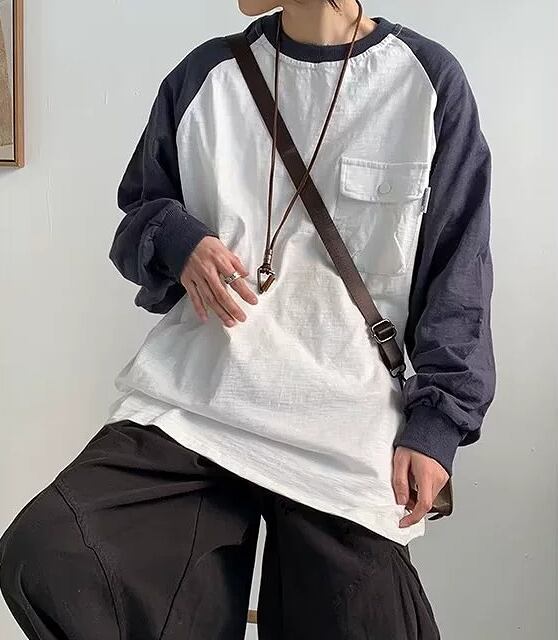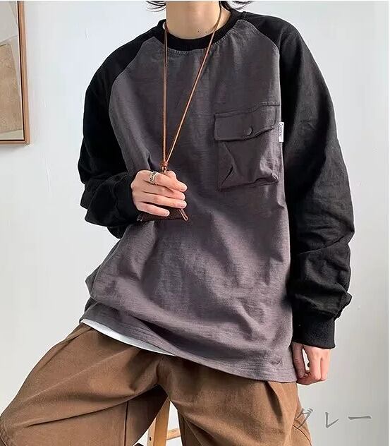 全2色 スウェット トレーナー 切り替え バイカラー 体型カバー 着痩せ 原宿系 【大きいサイズあり】