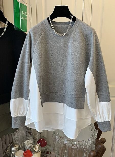 全2色 スウェット トレーナー 切り替え バイカラー 体型カバー 着痩せ 【大きいサイズあり】 カジュアル