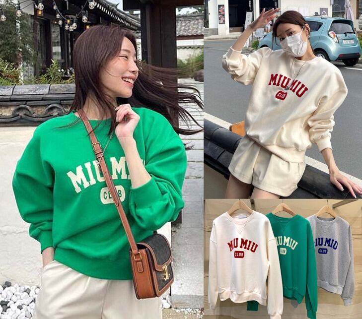 全3色 スウェット トレーナー 長袖 切り替え 体型カバー 着痩せ LOGO ロゴ 英字 シンプル カジュアル