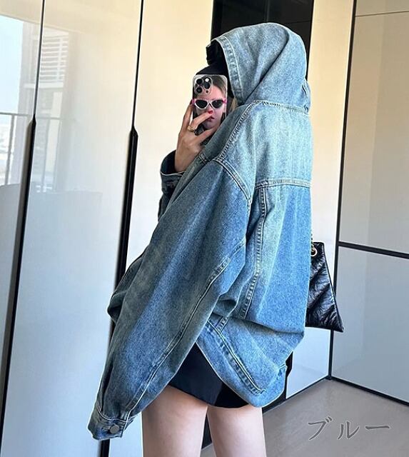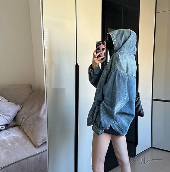 スウェット トレーナー 長袖 切り替え 体型カバー 着痩せ デニム 帽子付き シンプル