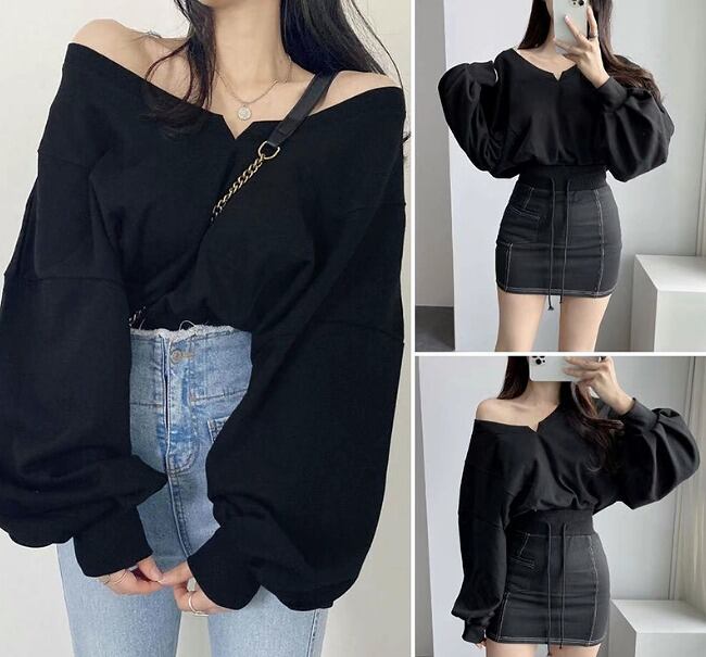 全3色 スウェット トレーナー 長袖 切り替え 体型カバー 着痩せ カジュアル