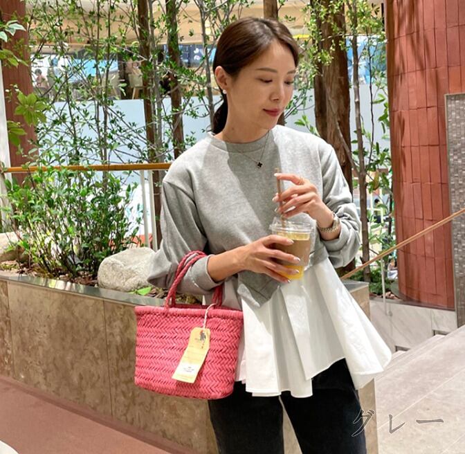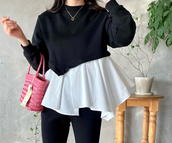 全2色 スウェット トレーナー アシンメトリー フリル 切り替え 体型カバー 着痩せ カジュアル