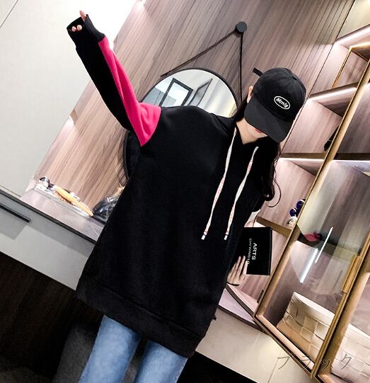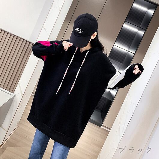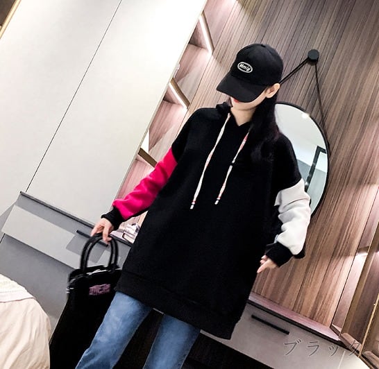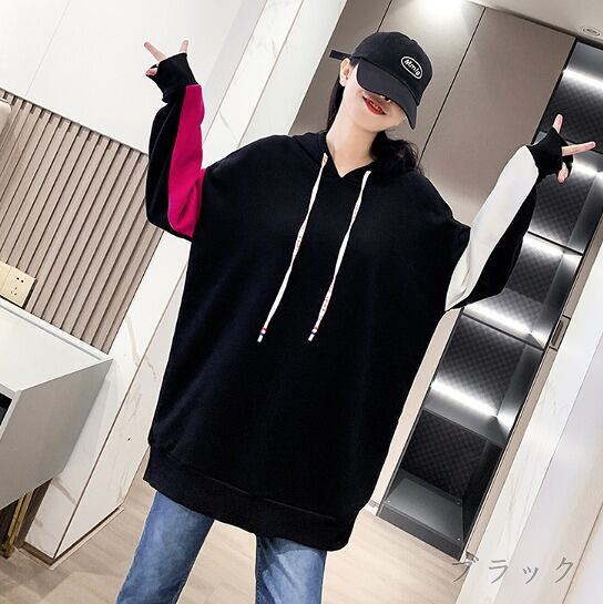 スウェット トレーナー 長袖 切り替え 体型カバー 着痩せ バイカラー 帽子付き 【大きいサイズあり】