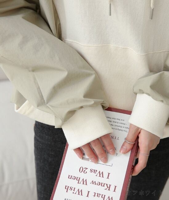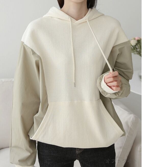 スウェット トレーナー 切り替え バイカラー 体型カバー 着痩せ 帽子付き シンプル カジュアル